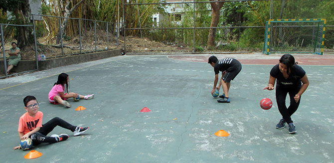 Niños que toman clases de balonmano en la Villa Centroamericana,